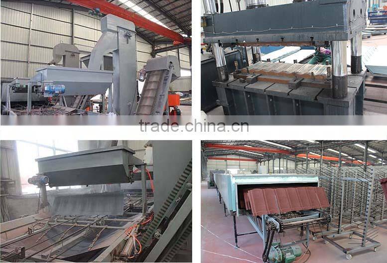 A: The aluminum-zinc steel plate is strong the other building material.The glue spraying in surface also adopt new technology.so our roof tiles can be used for more than 50 years.