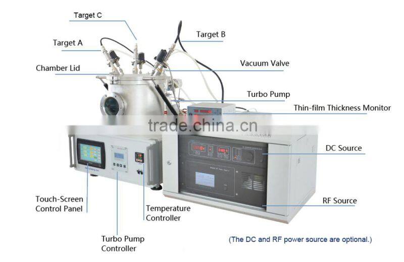 VTC-600-3HD is a 3-heads compact 2“ magnetron sputtering system with optional power source: DC supttering , RF supering, both RF and DC supttering, which allows researcher doing all types of thin film coating in one machine A film thickness tracker is included to enable the user to control processing easily. This coateo is suitable for coating multiple layer film of a wide range of material,such as ferroelectric, alloy, semiconductor, ceramic, dielectric, optical, oxide, hard, PTFE etc. at affordable cost.