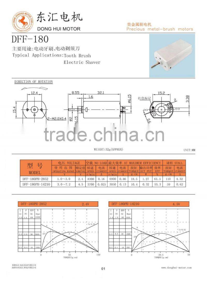 2.4v low voltage low torque vibration dc motor fk-180