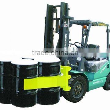 Forklift oil drum lifting clamps are used wherever product is stored in drums, including the petroleum, chemical and food processing industries.Forklift Four Drums Clamps inprove productivity by allowing a forklift driver to handle up to four drums per load. In addition, the use of a drum clamp allows the driver to securely grip the drums for transporting. This eliminates instability during braking and cornering, which is a common problem when attemping to handle drums with conventional forks.