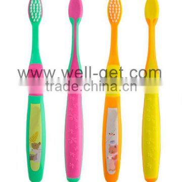 Our shaped toothbrush is suitable to children. Besides, they may like the design as there are magic suckers with it, which makes the toothbrush always stand-up.