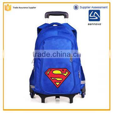 2016 China sannovo wholesale latest fashion superman school trolley bags for boys
