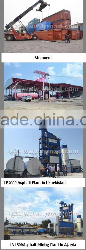 Liaoyuan Company are one of China Top-ranking asphalt plant manufacturers which is started from 1992, until now we have sold more than 500 sets of asphalt plants(capacity from 20t/h to 400t/h) distributed in China and overseas markets. such as Poland, Rumania, Russia, Australia, New Zealand, Canada, Panama, Ecuador, Peru, Chile, Algeria, Kenya, South Africa, Zimbabwe, Philippines, Indonesia, Kazakhstan, Mongolia, Egypt, etc. and our products has awarded the CE,Gost-R and ISO Quality Certificate.