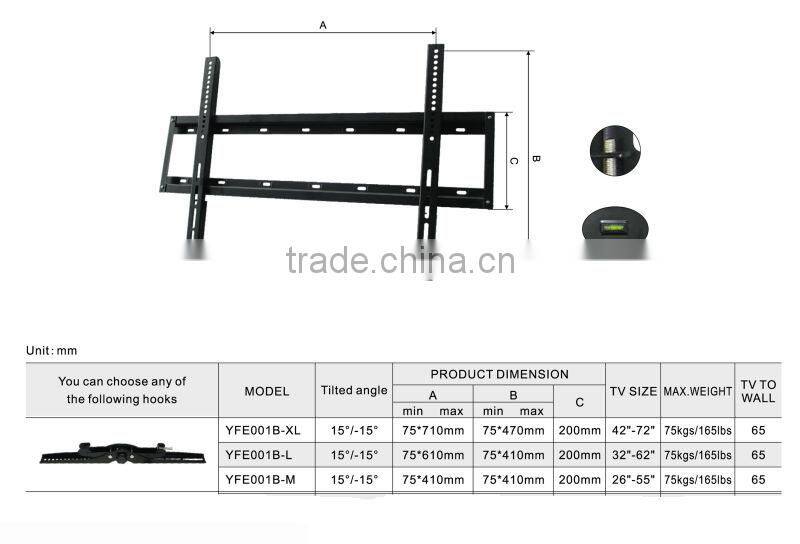 Simple designed 15 degrees tilted tv wall brackets YFE001B-M