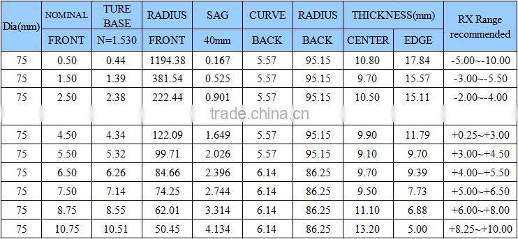 Semi-finished Ophthalmic Lenses CR-39 1.499S/FNegotiableMOQ: 100 Pairs