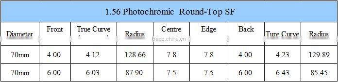 | 1.Production: | 1.56 UV400 Photochromic Semi-finished | |||||