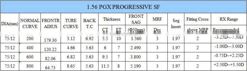 Ophthalmic Lenses 1.56 5 Seconds PGX Progressive S/F Photochromic Semi-finsished