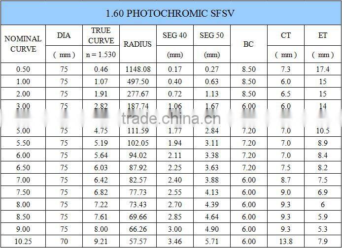 | 1.Production: | 1.61 UV400 Fast Photochromic(5 seconds ) | |||||