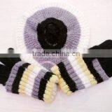 Fashion Lady Acrylic Knitted Jacquard Mitten Hat Set