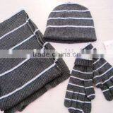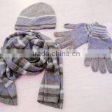 Lambs Wool Stripe Hat Scarf Gloves Set