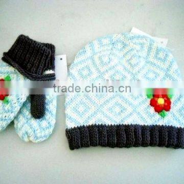 The is a jacquard mitten hat set with embroidery design ,it is unique,comfortable,soft,chic,stylish,soft hand-touch .The is a jacquard mitten hat set with embroidery design ,it is unique,comfortable,soft,chic,stylish,soft hand-touch .