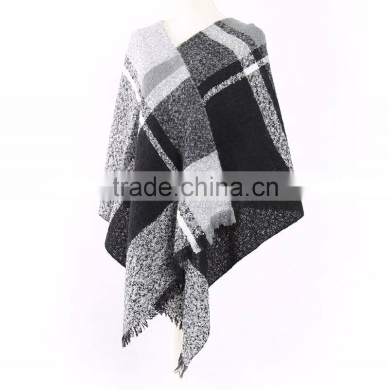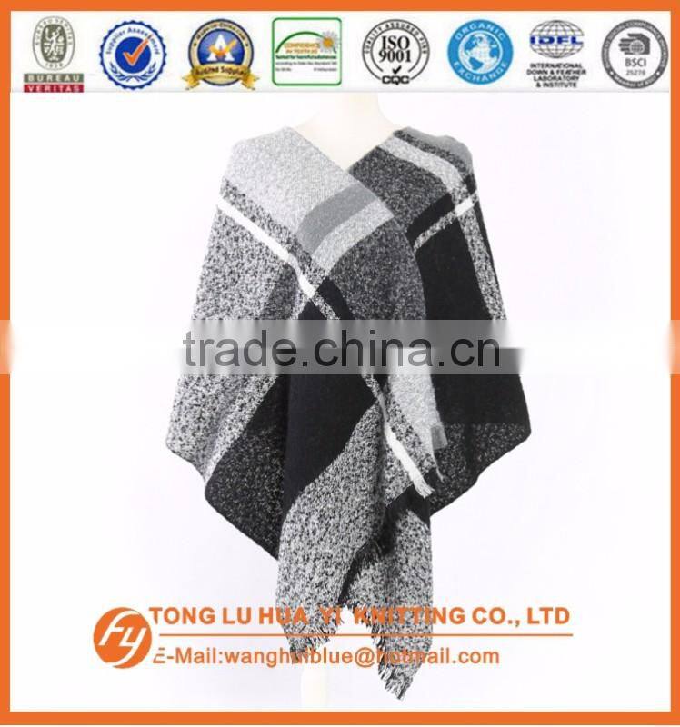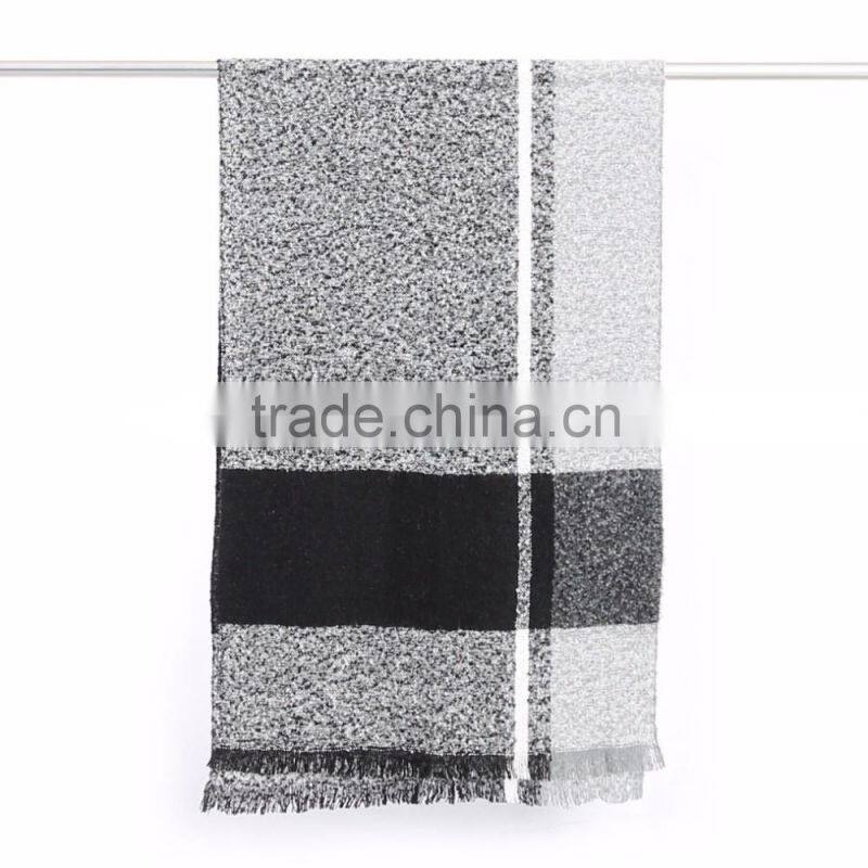 Fashion Soft Wholesale Black Chequer Loop Yarn Woven Square Scarf