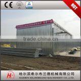 The kiln is built in all aluminum and stainless steel constructon for corrosion resstance and is installed on a concrete foundation. The construction consists of an aluminum inner wall and outer wall with fiber glass insulation in between. The multi-layer kiln structure can effectively balance expansion and shrinking stresses caused by temperature differences between the inside and the outside of the kiln while in operation. This ensures that the kiln stays prperly sealed. In cold area like syberia, we adopt 150mm thicknes profile and 35x35mm corrugated ceiling, which can afford 200KG snow load.