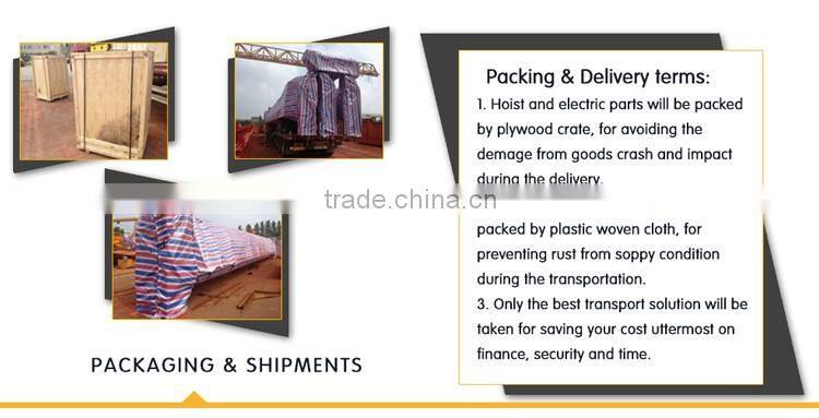 1. Hoist and electric parts will be packed by plywood crate, for avoiding the demage from goods crash and impact during the delivery.