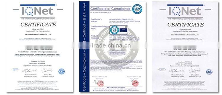 a). Dowellcrane Machinery Group have already obtained the CCC,CE,BV,SGS,ISO OHSAS certification's and have won over 60 honors.