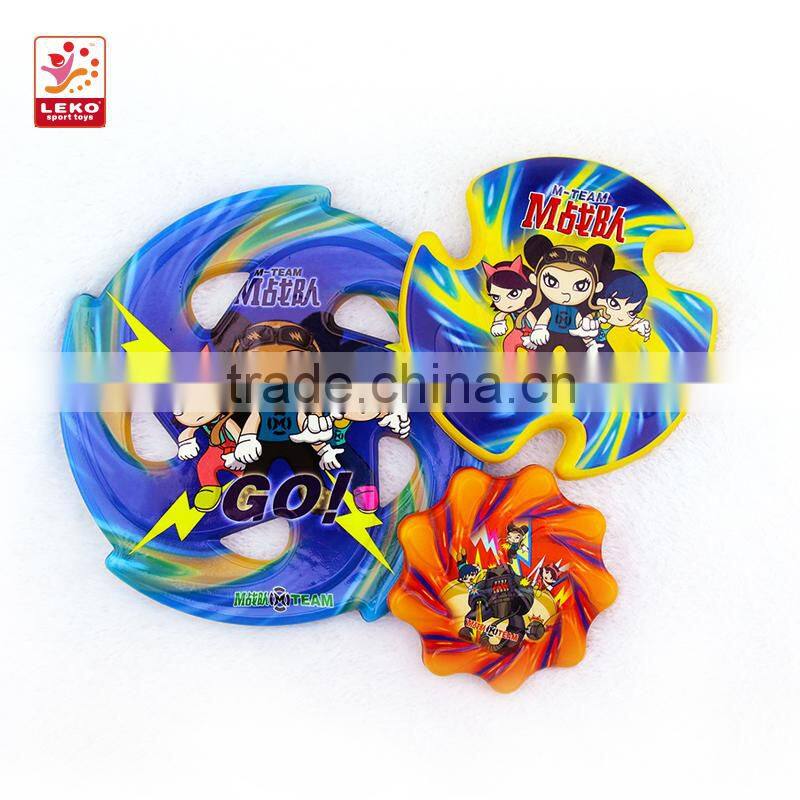 soft toys flying disc is light in weight with suitable shape,all made from PU foam,using unique manufacturing process and technology to make the arc surface,combine with Full-color printing to show excellent performance and aesthetic design. Rigid yet stretchy feature makes it durable and helps to prevent injury when children play,special streamlined design enables it to travel steadily in lines and arcs.It could not only spin in the air,but also fly higher and stay loger.Frisbees can be used in exciting professional tournament as well as relaxing exercise with your lovely pet. Player could get a lot of fun in the exercise.