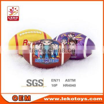 B:For the 13.2CM rugby ball toy,MOQ is 30,000pcs.You could have 12 different designs.