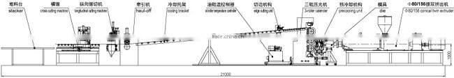 3. Pvc board machine also include the die head, cooling calibrating mould, cooling carrying roller,hauling-off unit, edge trimming device,dust collecting machine,cutting device,and delivery stacker.