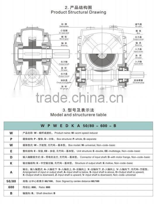 1.5 While assembling motor of WPD reducer, it is necessary that proper amount of butter applies to the warm shaft input hole and keyway, avoiding assembling too tightly and rusting after using for a long time.