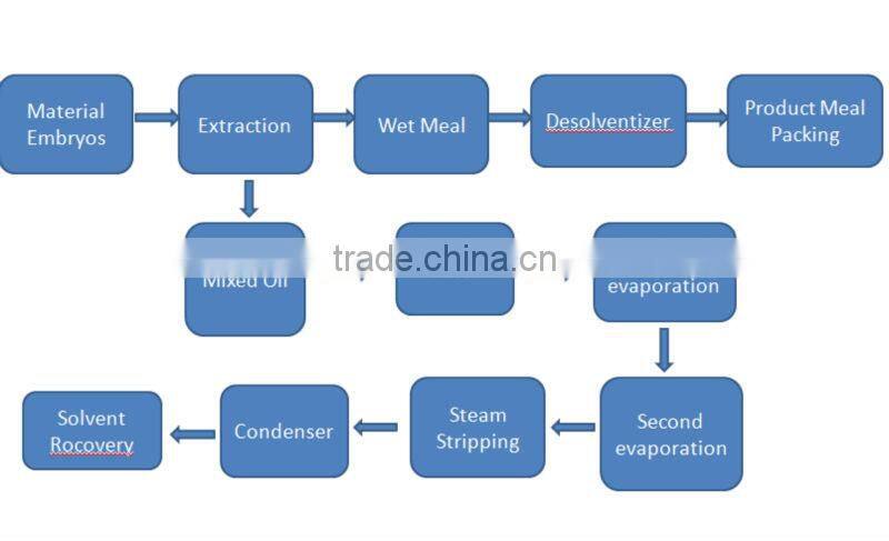 Solvent-- Extractor--Mixed oil -- 1st and 2nd evaporation -- Stripping tower -- Crude oil