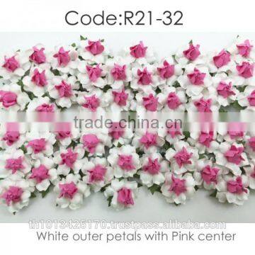 White With Pink Center Handmade Mulberry Paper Flower, Wedding Party, Scrap-booking Crafts, Wholesale 21/32
