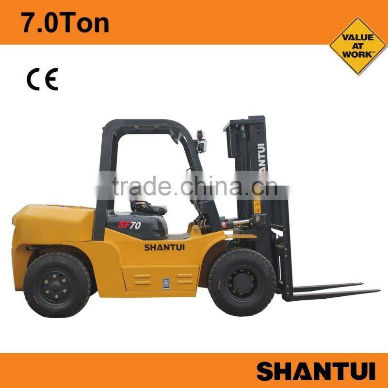Shantui 5.0Ton diesel forklift (SF50X)equipment with high quality China engine, hydraulic transmission,double oil pump,hydraulic assisted steering,four tires.It is widely used to handing all kinds of goods,such as pallet,steel,brick etc.Shantui has cooperated with KOMATSU more than 30 years,all the product was made under KOMATSU standard.