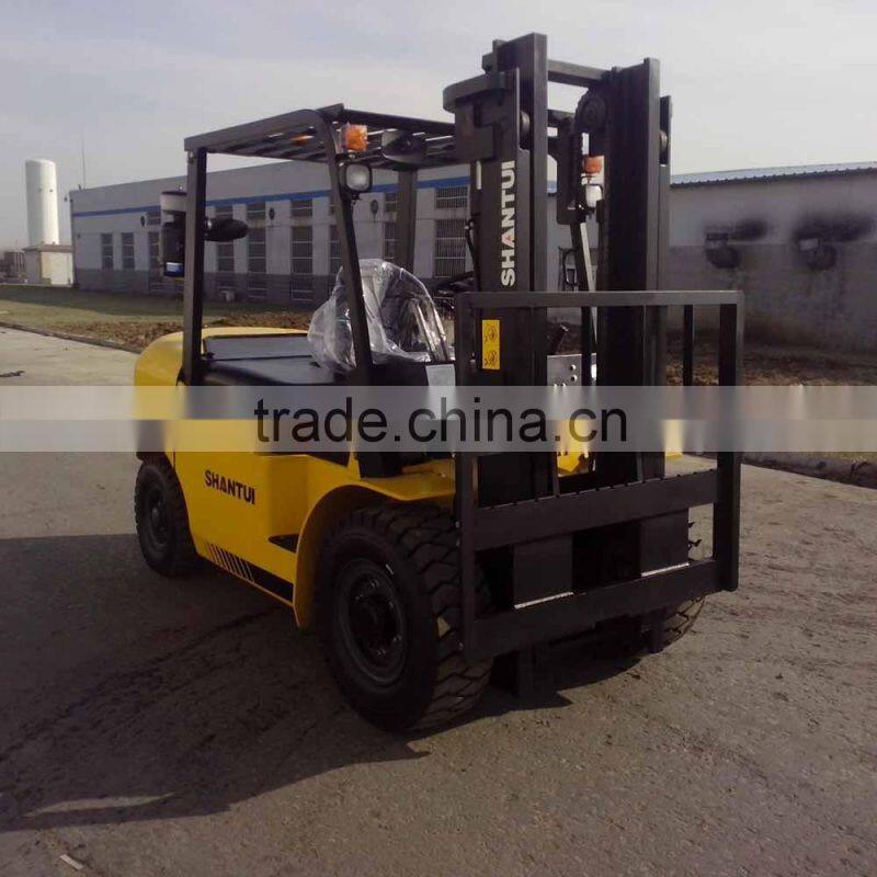 FD50 Forklift 5Ton forklift best using in container full free lifting mast with high quality China engine, hydraulic transmission,double oil pump,hydraulic assisted steering,four tires.It is best suitable using in container and workshop or warehouse,can handing in narrow space with height limited.Shantui has cooperated with KOMATSU more than 30 years,all the product was made under KOMATSU standard.