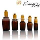 35ml Square Shape Glass Lavender Oil Bottle With Golden Press Pump