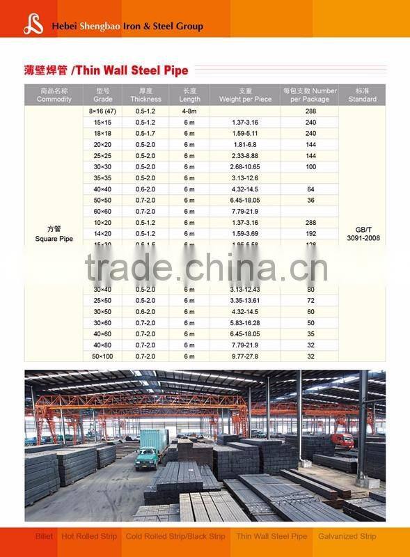 (Hebei Shengbao) Thin Wall Welded Square Steel Tube/SHS /Square Hollow Section
