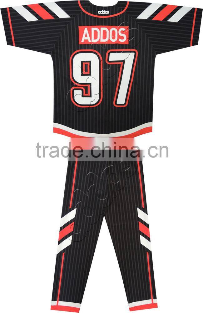 Sublimated design and colors with a combination of PRO TWILL 3 layer cut & Sewn team name accorss chest and player name and number. Premium quality uniform totally customized with different team colors, team logos , sponsor logos, player names and numbers for professional baseball teams, clubs and schools etc...