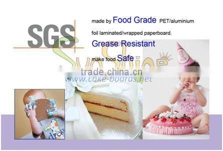 American cake board | Corrugated board | 4” to 20” | 3mm, 6mm | Die-cut | PET/Aluminum foil | 25pcs/shrink wrap |