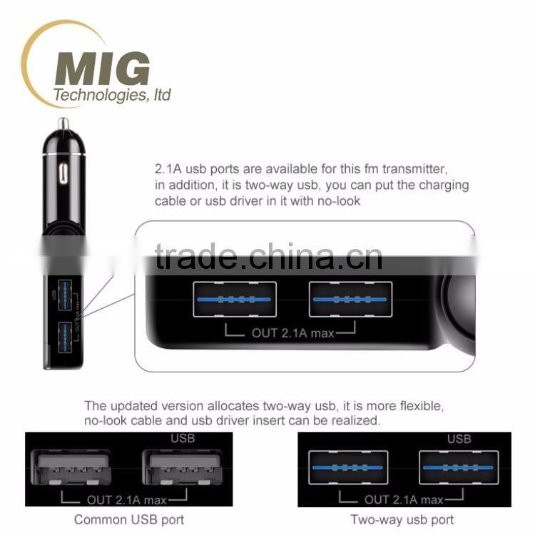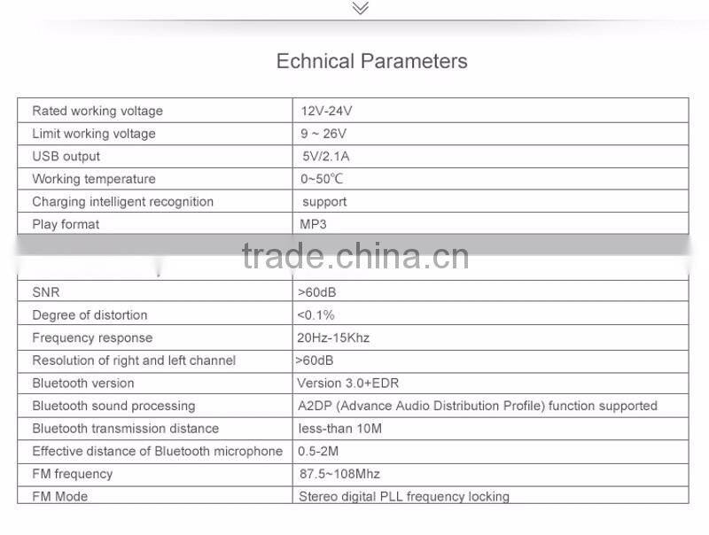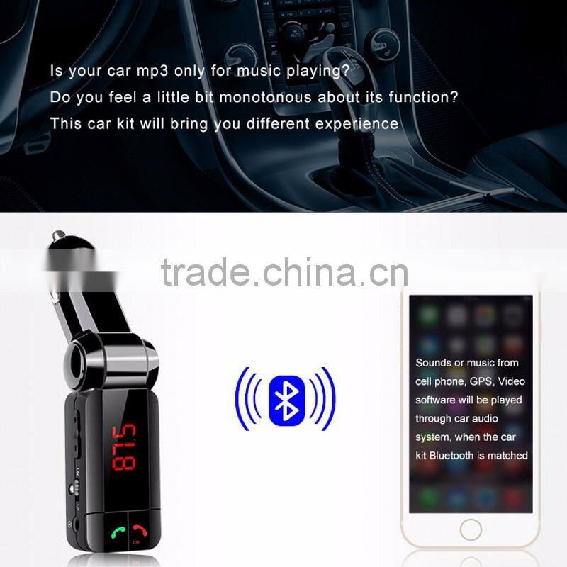 A: This blue-tooth car charger mp3 player adapting professional-grade high-performance bluetooth module ,built-in mp3/wma decoder chip make it capable of playing the music files in u disk,firing into the car stereo via wireless. Besides, during the bluetooth connecting, play the phone’s music and FM transmitter to Car Audio, perfect ,as the calls incoming automatically switches to the speaker state, call end then automatically back the music player. So you do not do any modifications, easily enjoying the music and handsfree phone calls while you are driving.