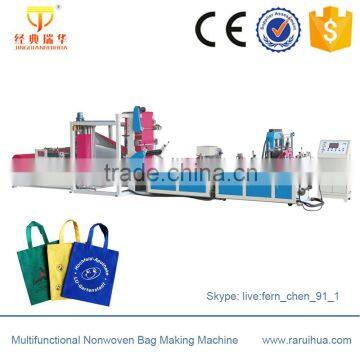 Fully Automatic Nonwoven Bag Making Machine applies for non-woven materials. It can make many kinds of bags such as vest bags, loop handle bags, flat bags, and ribbon-through bags for shoes and purse etc.