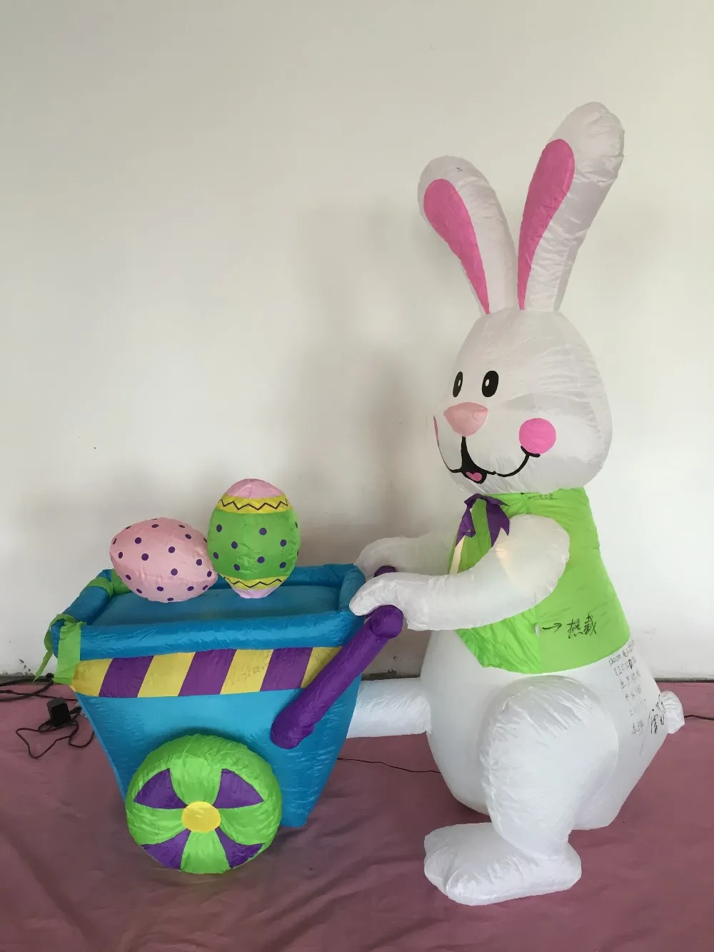 Easter Inflatable Rabbit Sitting on a Motorbike Outdoor Light up Decoration