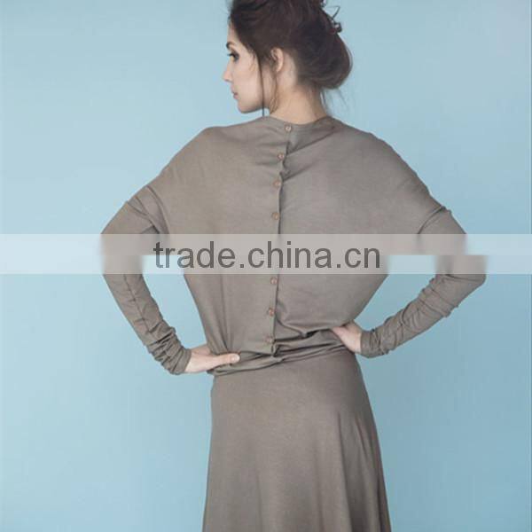 Beige dress Dress with sleeves Button back dress