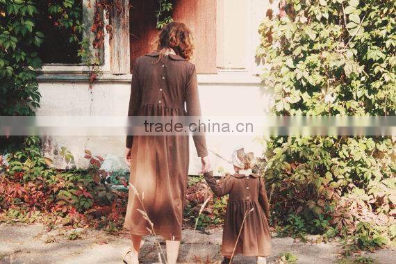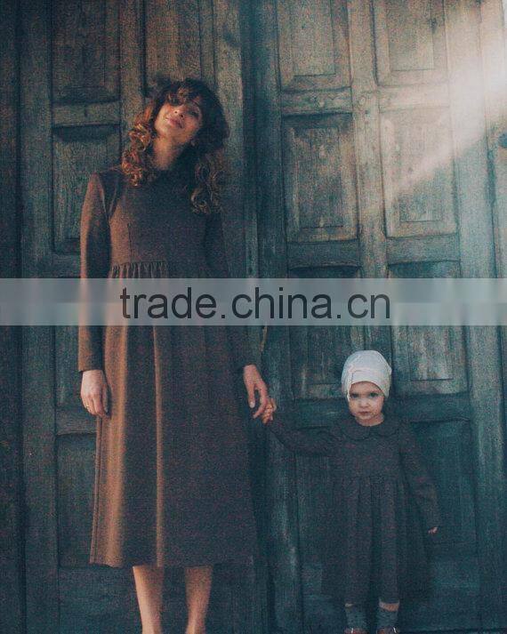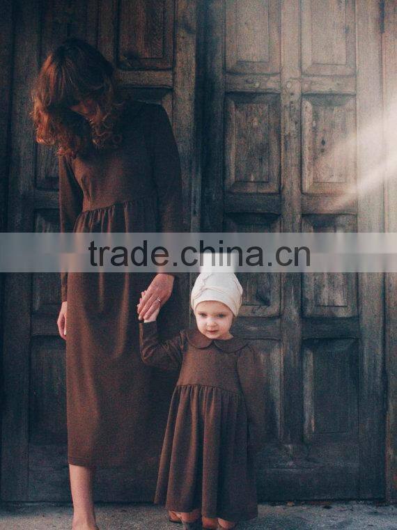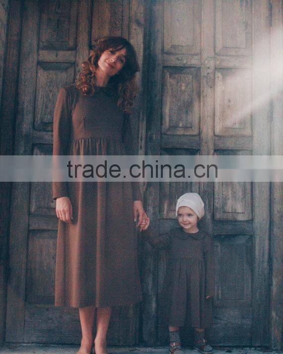 Mother and Daughter Matching Dresses. Autumn brown jersey fabric handmade matching dresses Like mother, like daughter. Suitable for spring - summer and fall - winter seasons for women and girl.