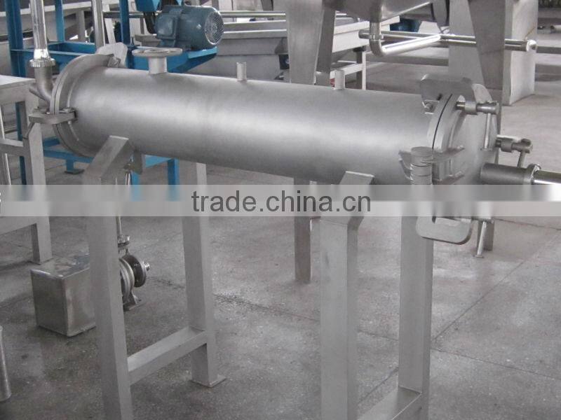 juice sterilization machine is composed of five groups of six roots of φ 25 × 2 tube bundle and shell. The material is passed the tube as three processing flow:two groups for inlet material, two groups for circumfluence,one group for output material.