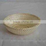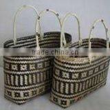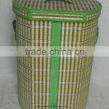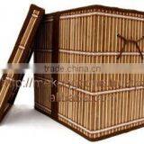 Woven Bamboo and Rattan Basket With Wooden Bottom