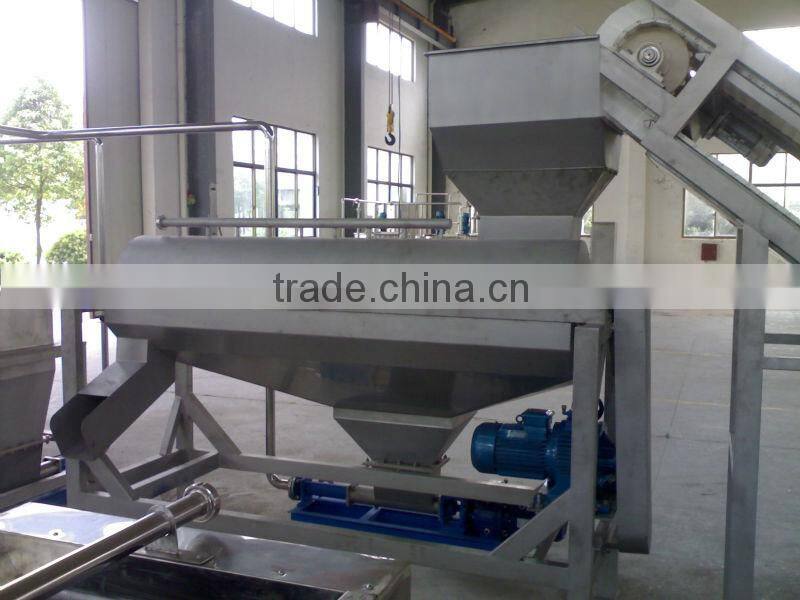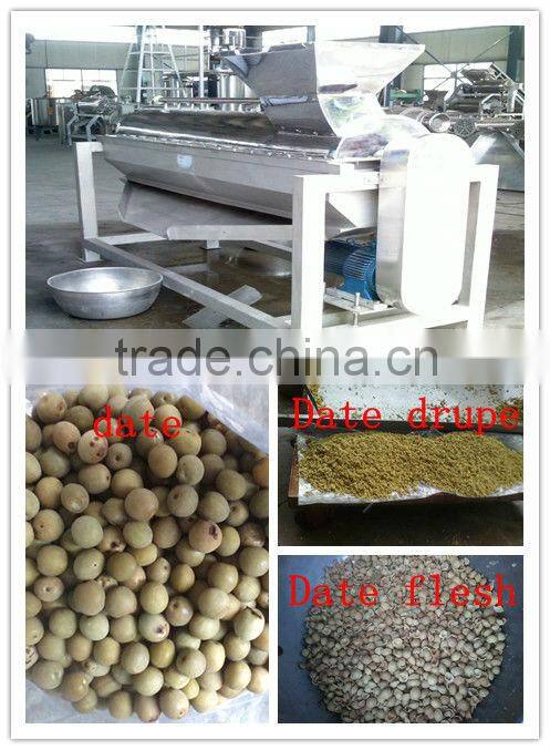 The equipment is mainly used for separating core and pulp of frupe fruits,such as olive,greengage,plum,apricot and peach etc.Through the separating boards of different angles on the rotor,the block pulp of fruit will be achieved,and it will drop into the material discharging hopper from the sieve mesh.The stone will be drop into the material discharging hopper from the sieve mesh.The stone will be discharged towards the stone exit through the spiral formed by numerous separating boards.The clearance between the sieve and separating board shall depend on the size of stone.