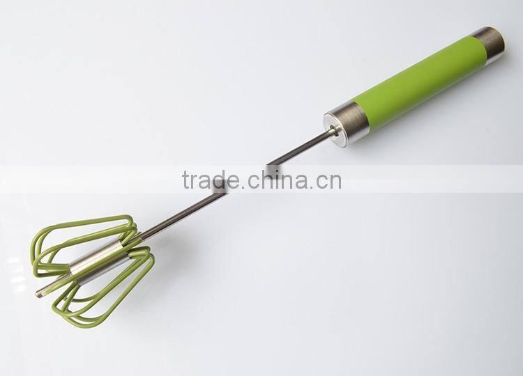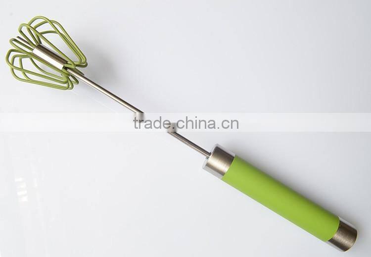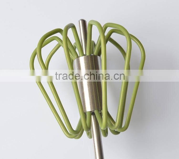 Stainless Steel Hand Push Rotating Whisk Silicone Coating