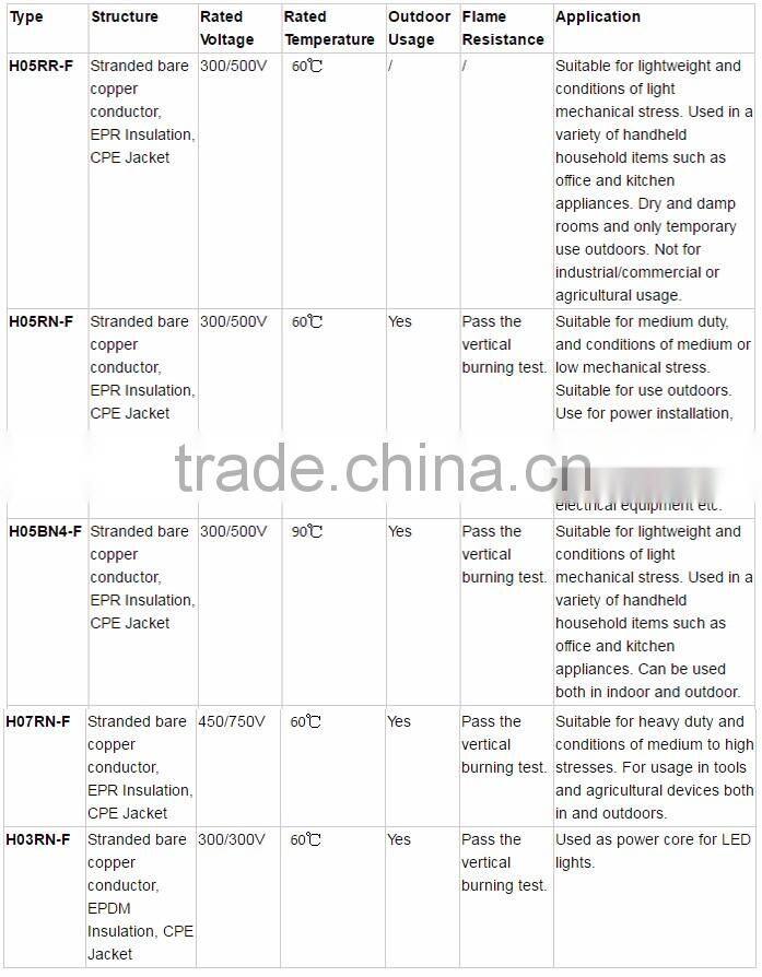 VDE Approval Flexible Rubber Cable H05RR-F, H05RN-F, H05BN4-F, H07RN-F, H03RN-F