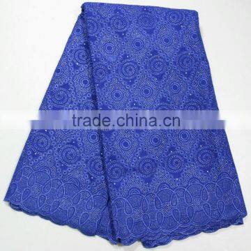 Latest lace 2015 embroidered cotton voile fabric royal blue swiss cotton lace fabric