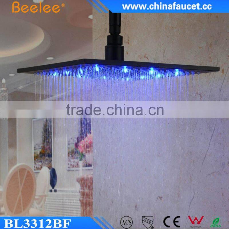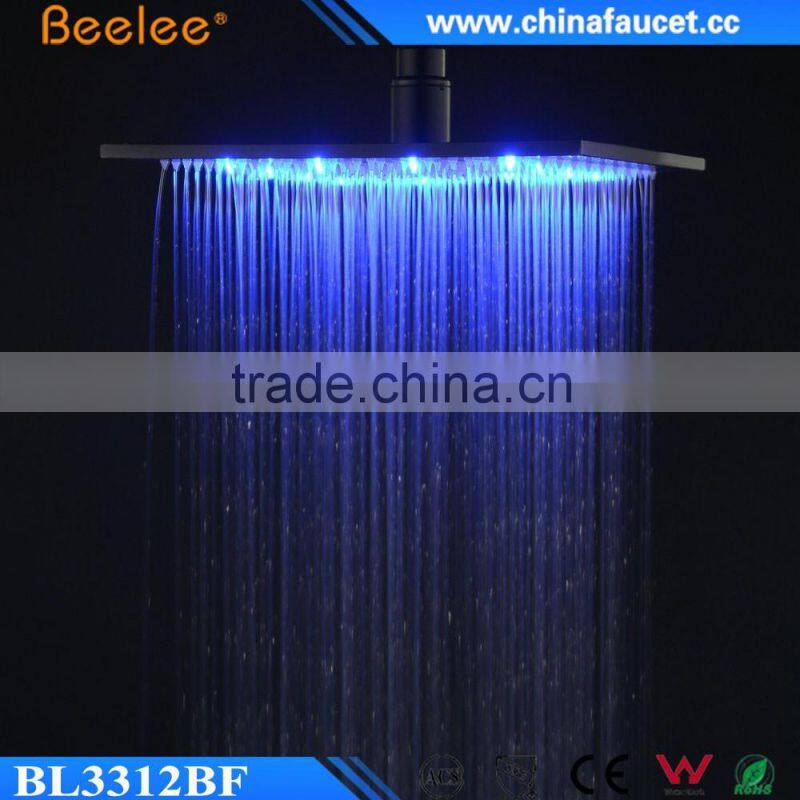 12 Inch Luxurious Bathroom Black Stainless Waterfall LED Light Square Head Shower