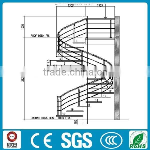 Chinese Oak Wood Steel Spiral Stairs Factory ---YUDI