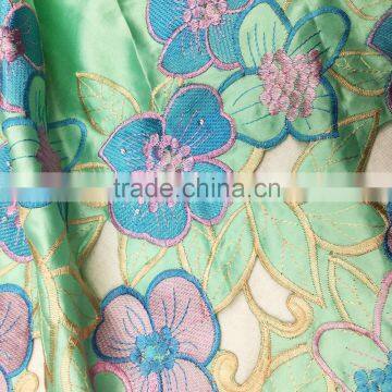 Foshan factory water green big flowers embroidery korea silk lace fabrics on sale