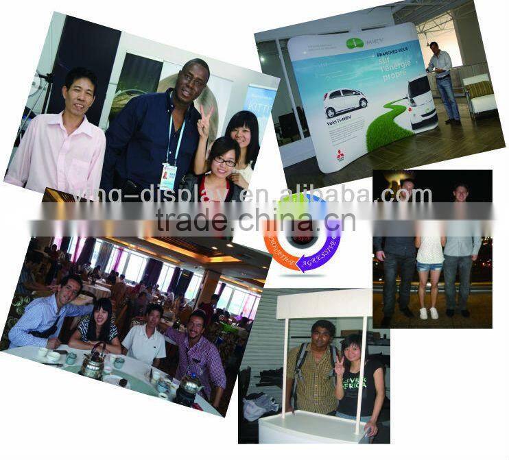 Guangzhou Yingjie Display Co., Ltd. was found in 2011, which is a professional manufacturer that specializes in developing and supplying advertising display products. Our main products include: teardrop banners, feather banners, pop up displays, roll up banners, A boards, outdoor display stands, snap frames, promotion tables, tension fabric walls, L banners and other display stands.