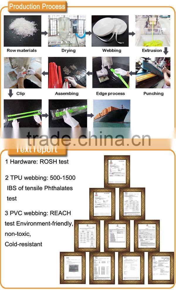 Material | high quality TPU coated nylon webbing with zinc alloy buckle, D ring,light and battery |