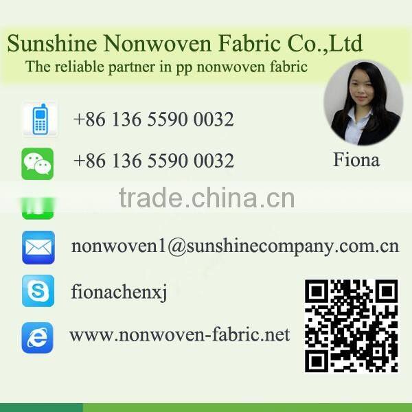 Sunshine Nonwoven Fabric Co.,ltd is one of manufacture supply 100% polypropylene spunbond nonwoven fabric for more than 10 years. We have exported containers to all over the world, also we have SGS,MSDS,AZO,OEKO certifications.
