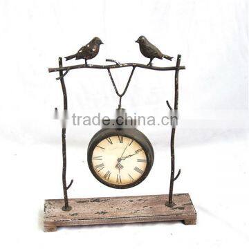 1.It is a metal stand with stick and hanging clock for table decoration;