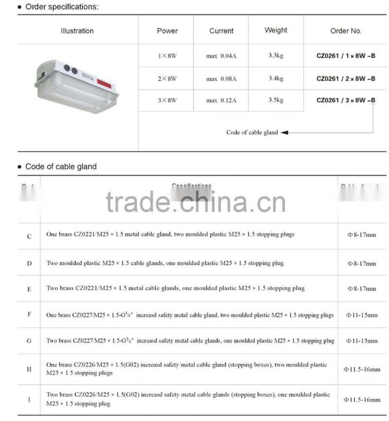 CZ0264 series Full plastic explosion-proof emergency or non emergency fluorescent light fitting 8W